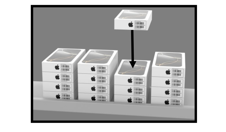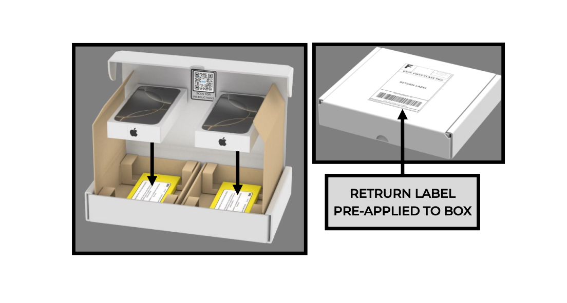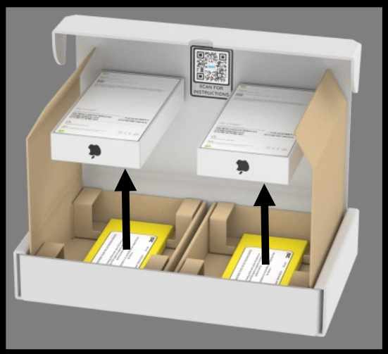 - Place old iPhone 16 tracker(s) on yellow transport plate FACE UP in the shipping box.