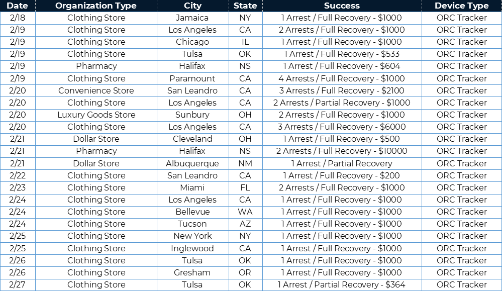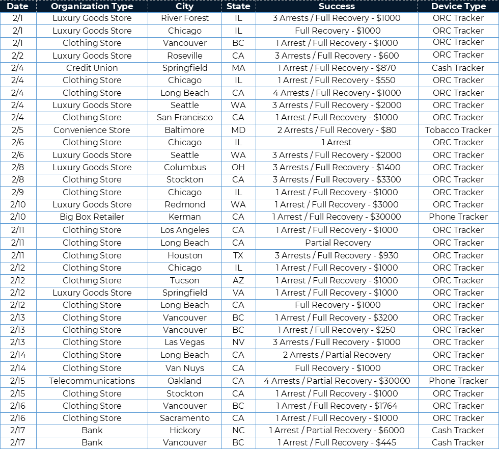 Suspects executed an organized retail theft and unknowingly took a 3Si ORC Tracker with the stolen merchandise. The GPS intelligence provided by the tracker was communicated to local police dispatch through 3Si’s DirectToDispatch platform. Dispatchers relayed to responding officers. They located the suspect at an apartment building, where officers apprehended two individuals and the full $10,000 in merchandise was returned.